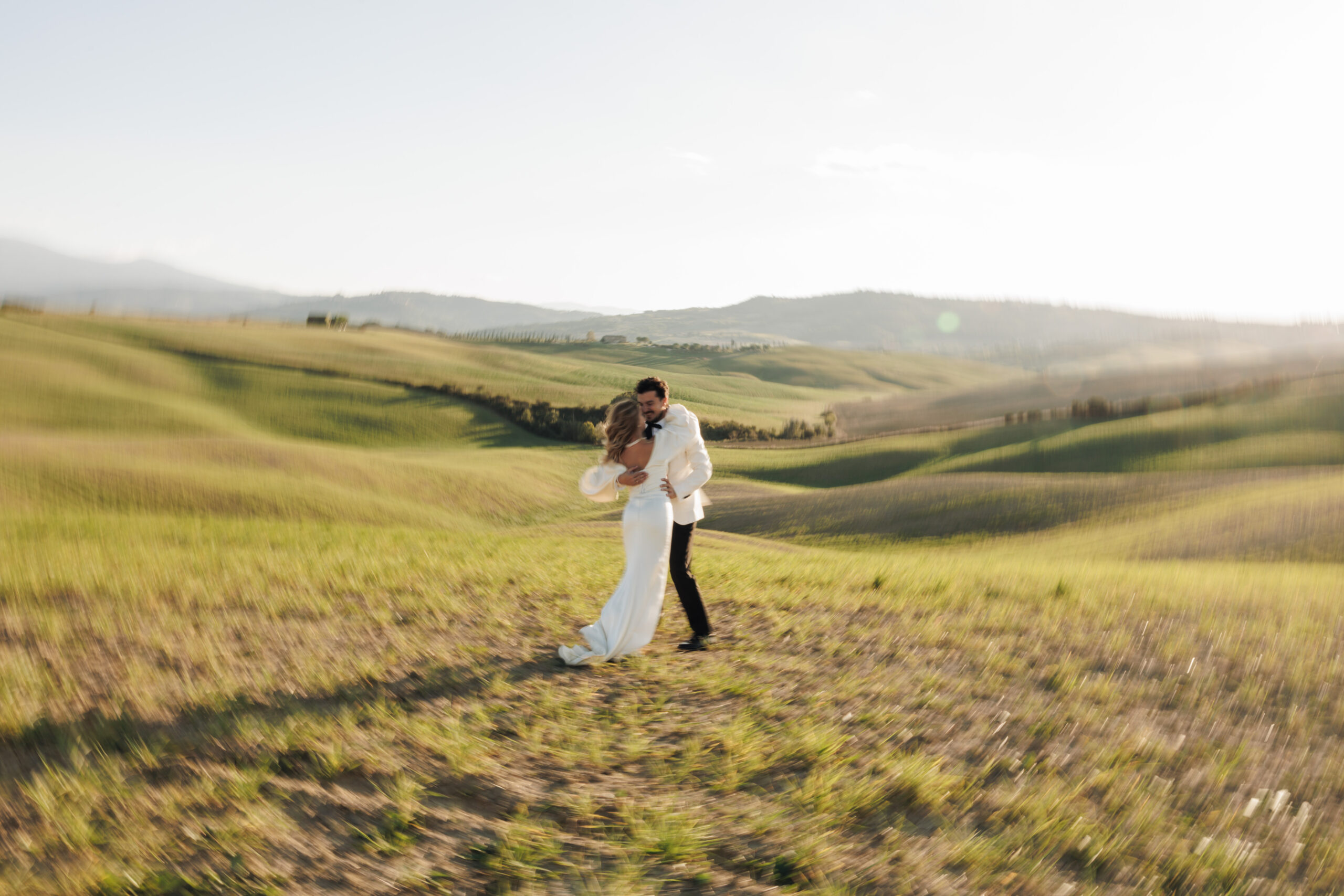 From San Gimignano, we continued toward Val d’Orcia, one of Tuscany’s most iconic and cinematic landscapes. This region, known for its rolling hills and poetic scenery, added a final layer of grandeur to their elopement story.